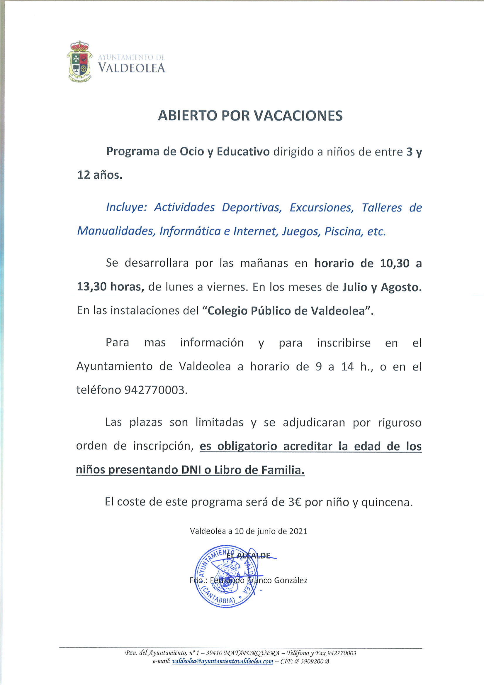 Para mas información en el Ayuntamiento de Valdeolea o en el telefono 942 770 003.