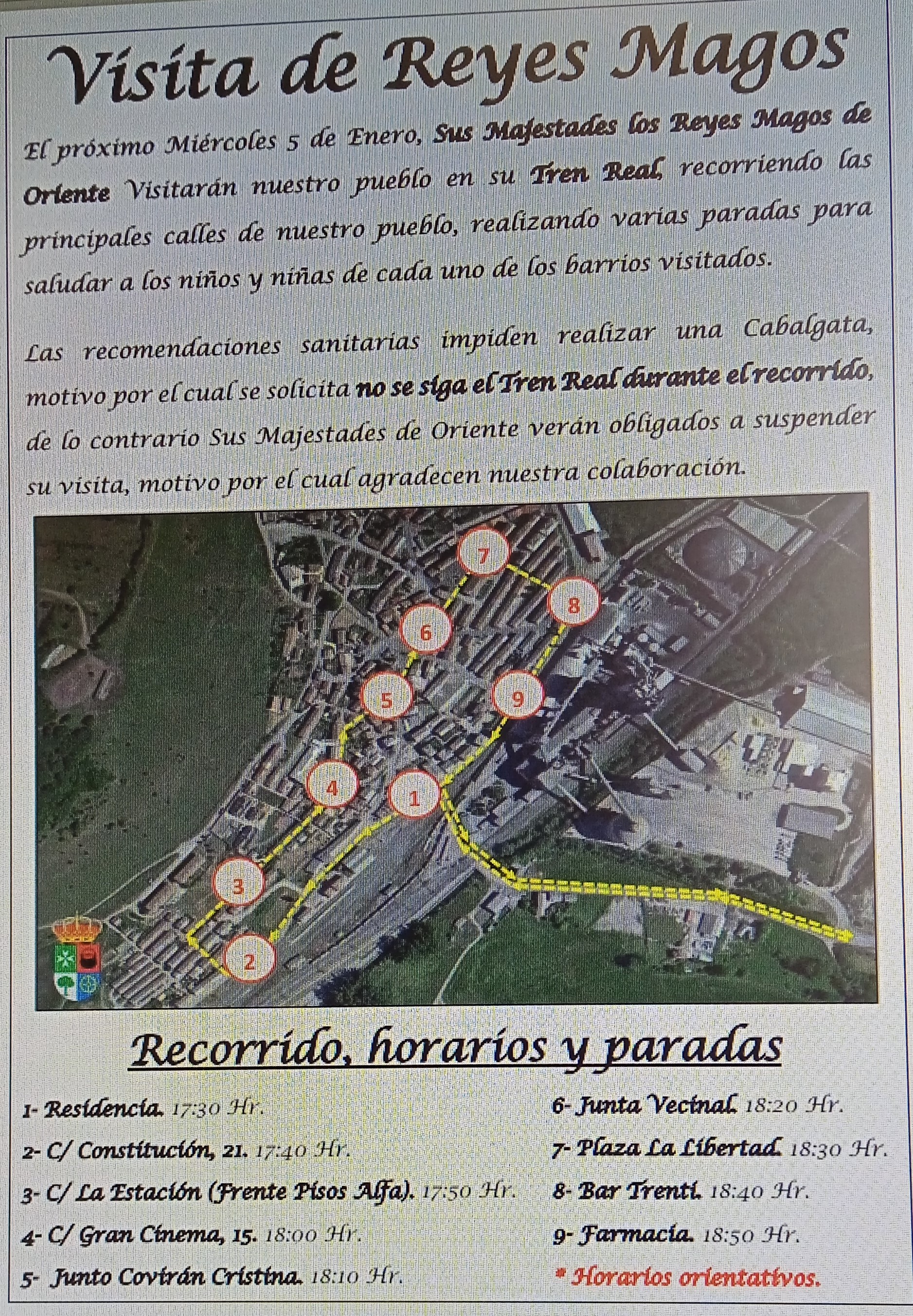 El próximo miércoles 5 de Enero, Sus Majestades los Reyes Magos de Oriente, visitarán nuestro pueblo en su tren real recorriendo las principales calles de nuestro pueblo, realizando varias paradas para saludar a los niños y niñas.