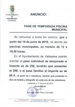 A partir del proximo 19 de junio, se abrirán las piscinas municipales, en horario de 12 a 19,30 horas.