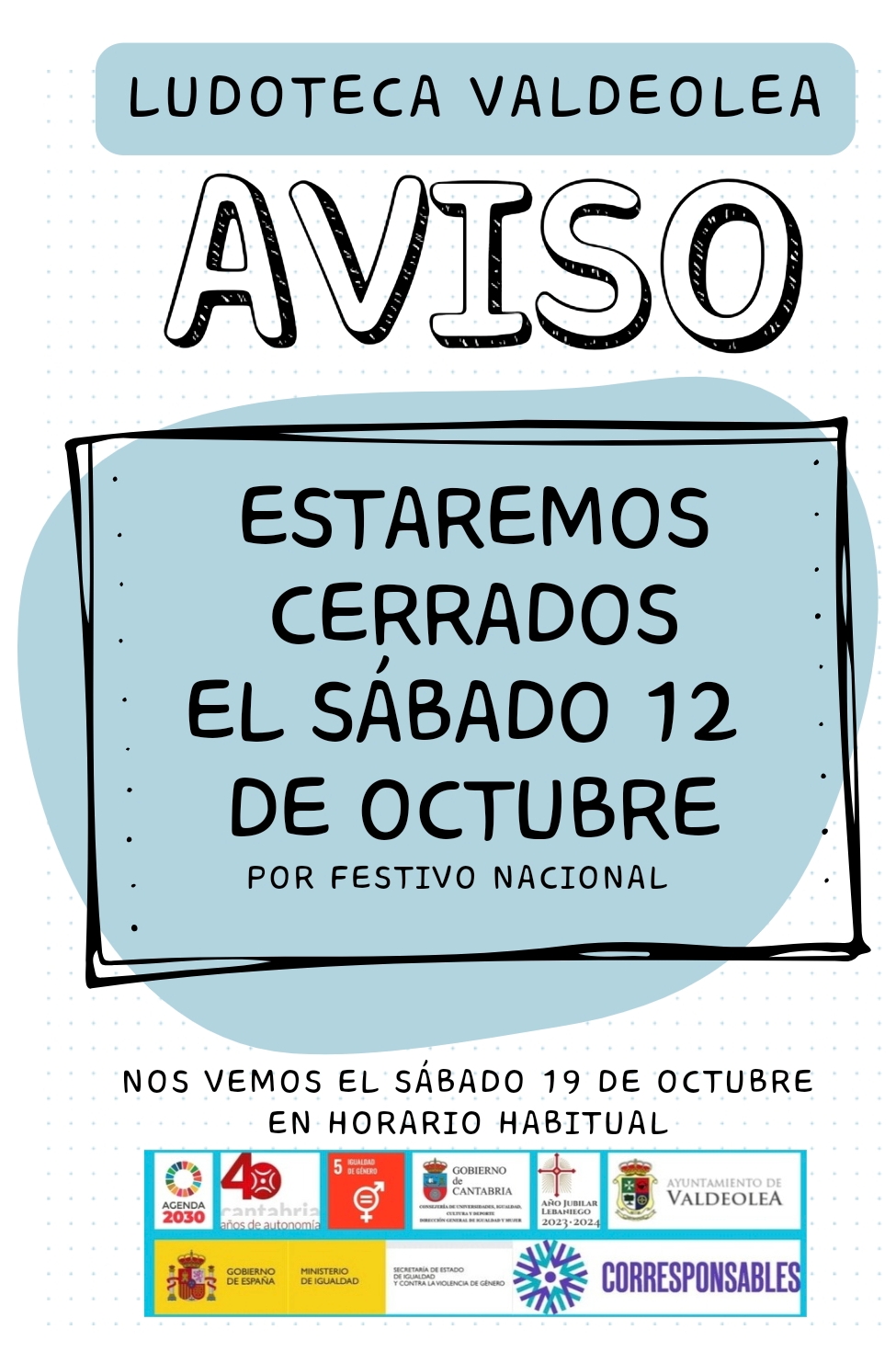 LUDOTECA CERRADA EL 12 DE OCTUBRE DE 2024 POR FESTIVO NACIONAL