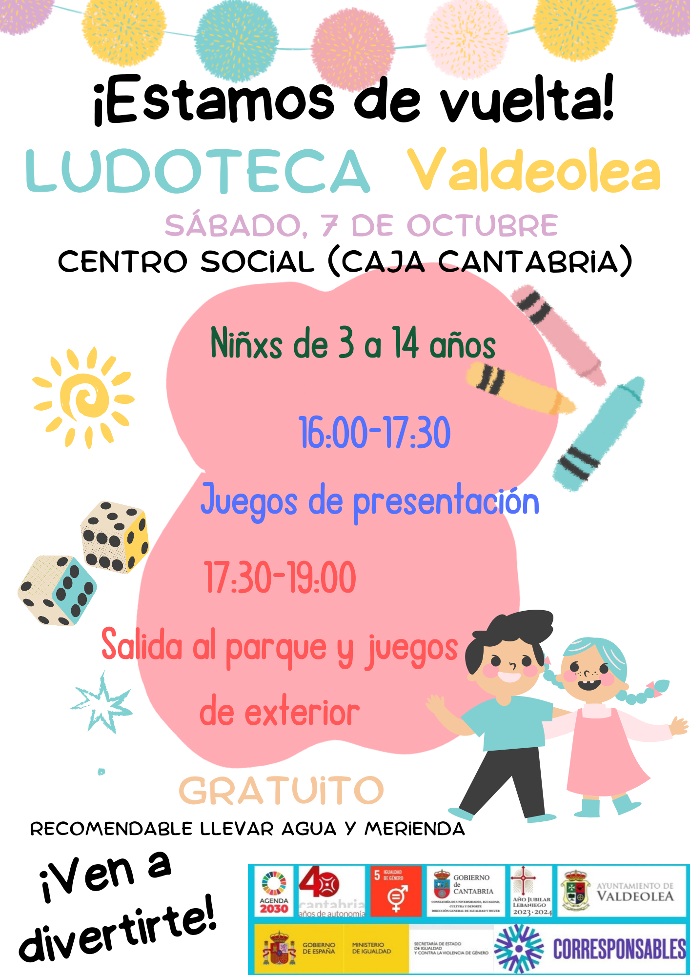 Se desarrolla en virtud de la subvención concedida por la Consejería de Universidades, Igualdad, Cultura y Deporte de la Comunidad Autónoma de Cantabria en el marco del Plan Corresponsables.