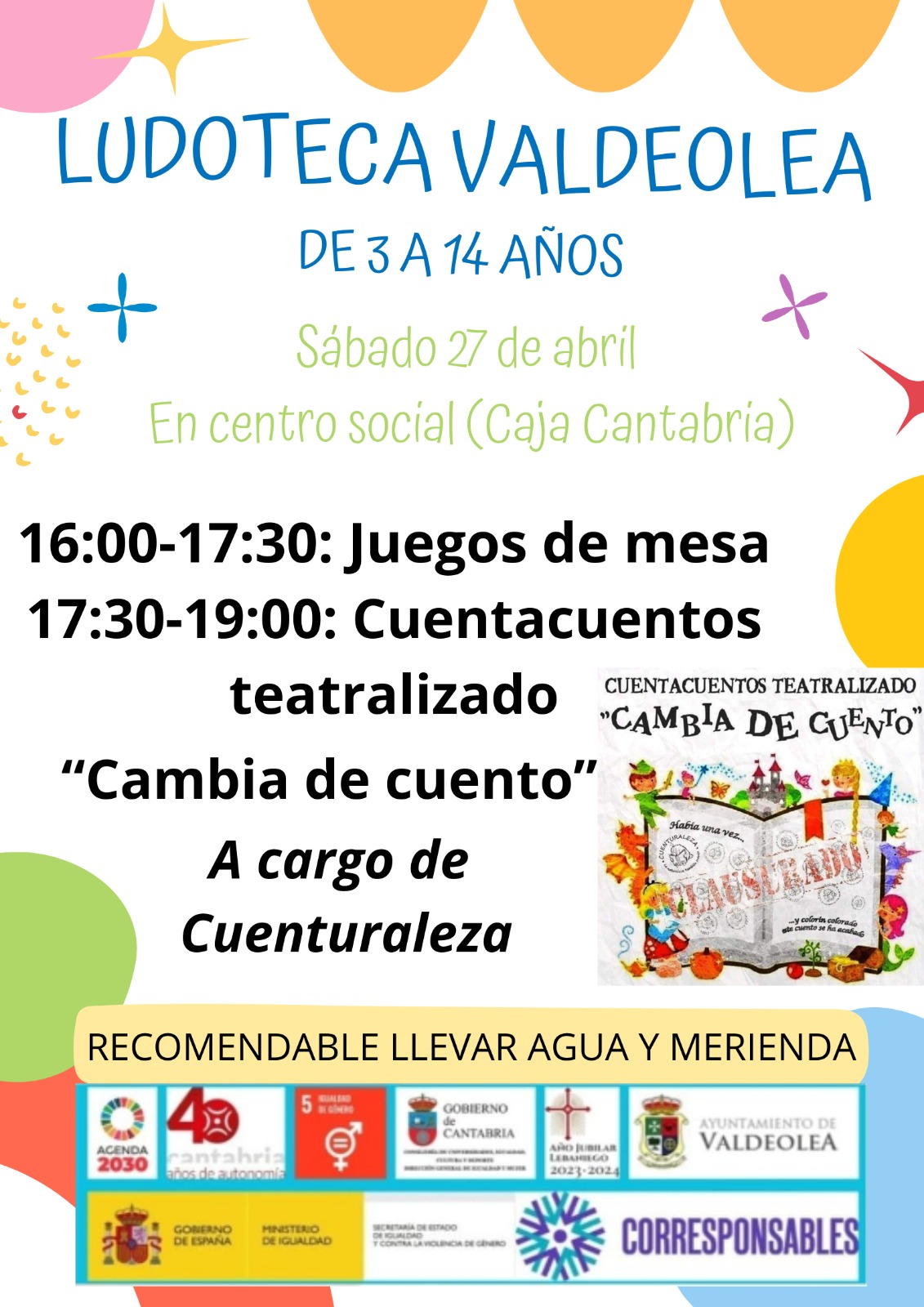 Se desarrolla en virtud de la subvención concedida por la Consejería de Inclusión Social, Juventud, Familias e Igualdad de la Comunidad Autónoma de Cantabria en el marco del Plan Corresponsables.
