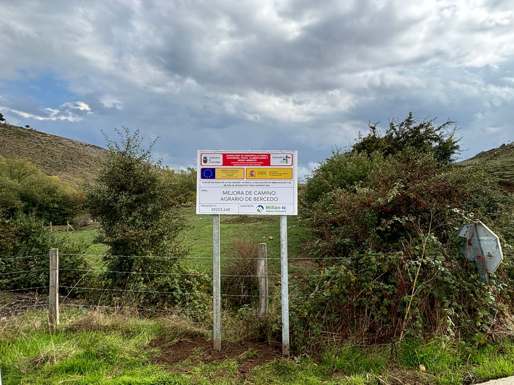 El Ayuntamiento de Valdeolea ha ejecutado el proyecto de "Mejora de Caminos rurales en Bercedo", con la subvención recibida del Servicio de Estructuras Agrarias de la Consejería de Desarrollo Rural, Ganadería, Pesca, Alimentación del Gobierno de Cantabria dentro al amparo de la Orden MED/12/2023, de 18 de abril, para la realización de obras nuevas y mejora de las infraestructuras agrarias para el período 2023-2027, por importe de 39.824,84 €.