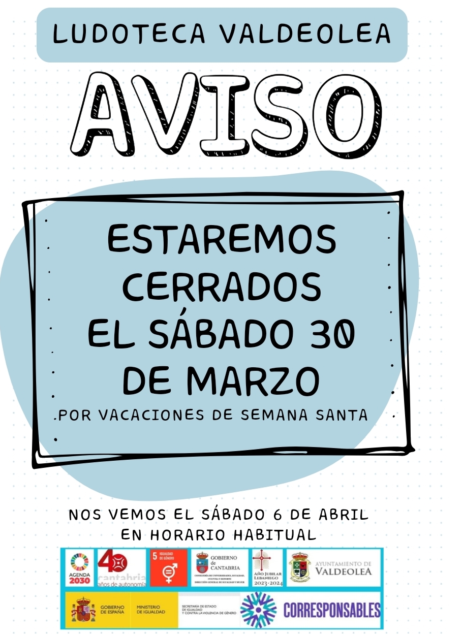 El sábado 30 de marzo estaremos cerrados por vacaciones de Semana Santa